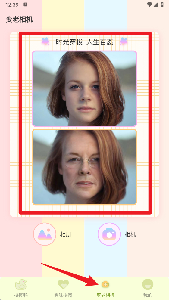 4、变老相机功能支持人脸特效处理,用户可以预览年轻与变老后的对比效果,趣味性十足。