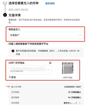 3、在充币详情页,选择【将资金充入】的账户【复制地址】。