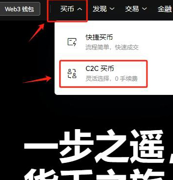 6、此时USDT已经转到欧易交易所内,打开欧易交易所,点击首页【买币】,选择【C2C买币】