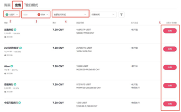 7、选择【出售】,选择【USDT】,选择【CNY】,选择【支付方式】,选择合适的买家进行出售,就完成人民币兑换