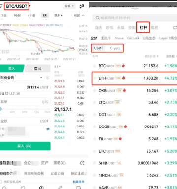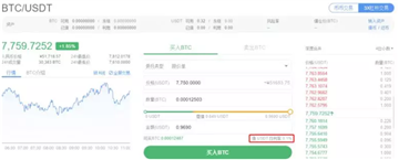 右边可以选择需要交易的交易对。例如BTC/USDT交易对,就是使用USDT来交易BTC。