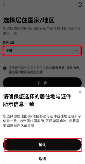 3.确保选择的居住地与证件所示信息一致,为了保护账号安全,请按照提示设置账户密码,密码设置完成,点击“下一步”即可完成账号注册