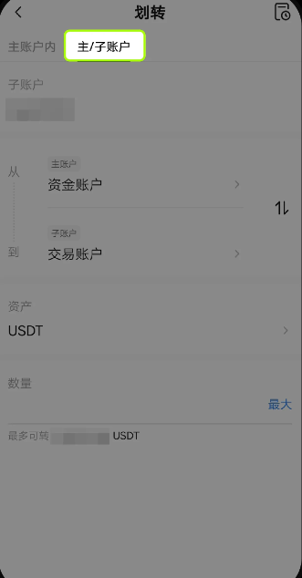 温馨提示:改变划转时【从】-【到】的账户,可实现主账户和子账户之间的相互划转。
