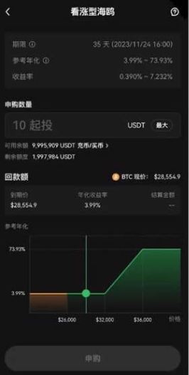 申购海鸥产品时,您将卖出期权并获得权利金,同时您使用部分权利金购买看涨或看跌期权价差,进而赚取不同行情下的潜在高收益。