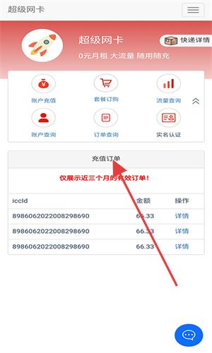 2、可查看近三个月有效充值记录,包含订单编号、金额,点击详情能了解充值具体信息,清晰管理充值情况。