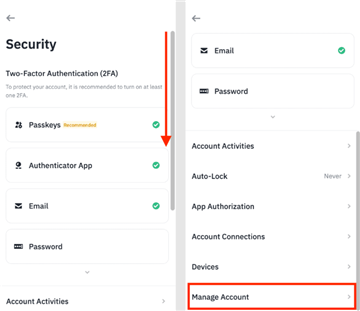 2.前往【账户安全】,然后向下滚动至【管理账户】。