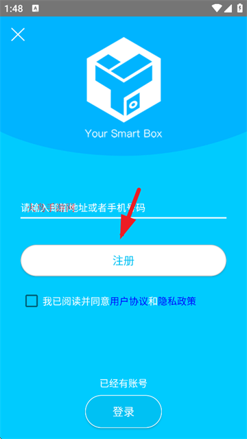 进入app后点击此处即可进行注册