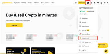 1,登录币安账户,前往【个人资料】-【奖励中心】-【奖励商店】。