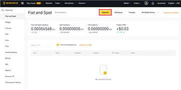11.您将在币安的交易历史记录下看到充值记录。