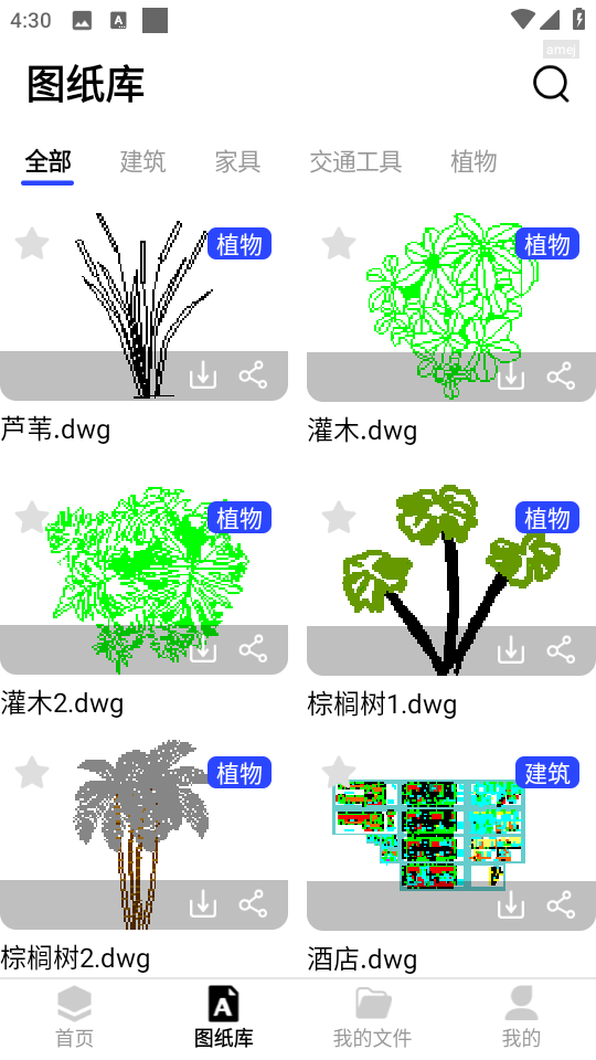 3、接着点击下方的“图纸库”,各种不同风格的图纸素材这里都有。