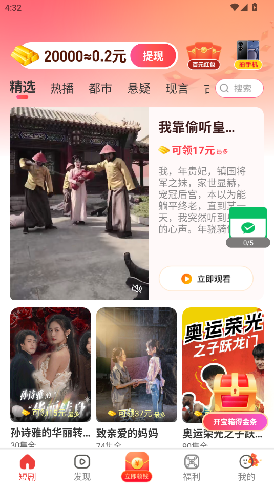 在看剧的同时,您还可以获得现金奖励!好看,好玩,尽在繁花乐看!