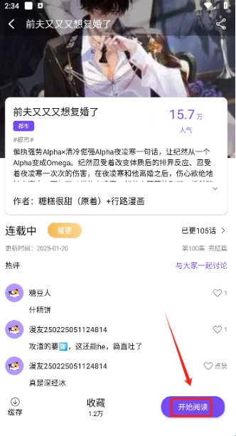 一键打开进入漫画详情页点击"开始阅读"。