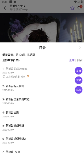 如图,最后滑动就可以选择喜欢的漫画章节阅读。