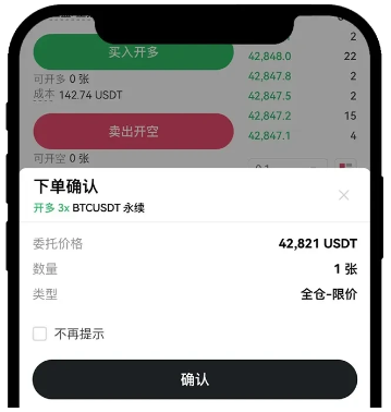 用户开仓的同时可以在【下单二次确认】里设置止盈止损,以规避风险,锁定收益。