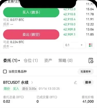 当你预判行情会上涨时,可以选择开仓做多。此处以BTCUSDT永续合约为例,去介绍一下【买入开多】和【平多】。