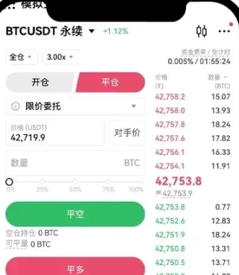 具体仓位页面平空单:点击【仓位】— 选择具体要平的仓位,点击【平仓】 — 输入【价格】或者点击【市价】—【数量】— 点击【平仓】。