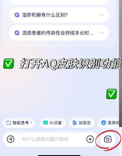 除了文字问答,阿福还有照相机功能,拍药盒、拍皮肤、拍体检报告,让阿福给出科普解答。阿福照相机还有“无痕拍”模式,可以做到阅后即焚效果,本地也不会保存提问记录,贴心保护大家隐私。