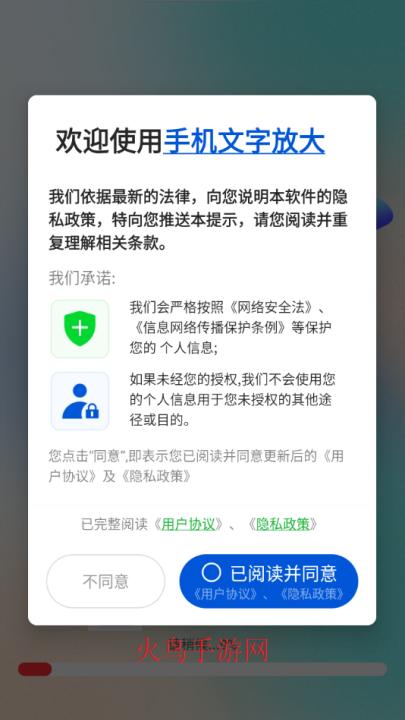 下载并安装手机文字放大app,打开后同意授权访问权限。进入首页,选择想要调整的字号,会提示获取相应的授权。
