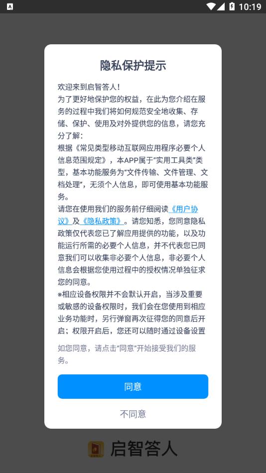 1、下载安装软件后打开,点击同意弹出的隐私保护提示。
