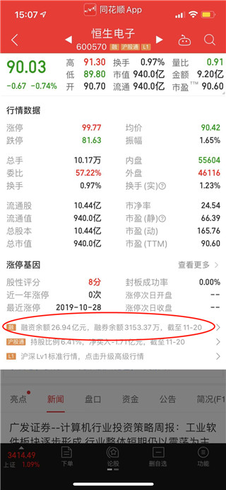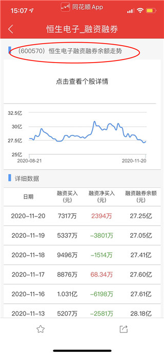 3、在下拉列表中看到融资余额的基本信息,点击它;