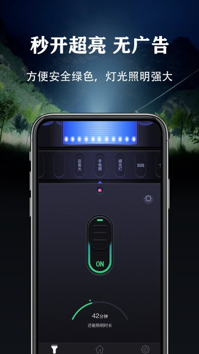 1、秒开超亮无广告,方便安全绿色,灯光照明强大。