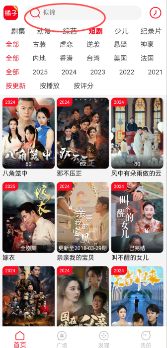 3、使用顶部搜索栏输入剧名或相关关键词,系统会自动匹配出相关内容。