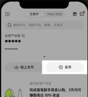 1)打开OKX App 首页,点击【买币】- 【C2C 买币】。