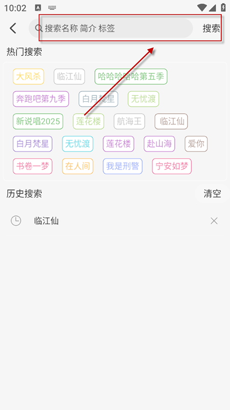 3、点击首页的搜索图标,输入影视名称、关键词等,点击搜索,在搜索结果中选择想要观看的视频。