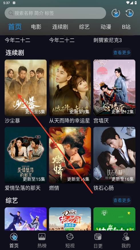 1、在本站内下载安装并进入软件首页,可查看系统推荐的热门影视资源、最新更新的剧集等,点击封面即可播放。
