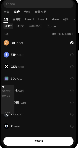 自选列表:查看您在欧易自选的币种的涨跌,关注行情变化;
