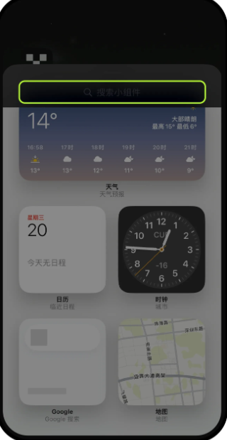 1、长按主屏幕,点击左上角“➕”图标,搜索小组件里输入“欧易”或者下拉找到欧易应用并点击。