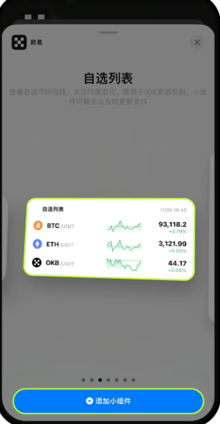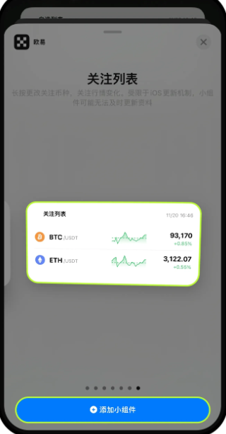 欧易为 iOS 用户提供了多样的盯盘小组件,包括: