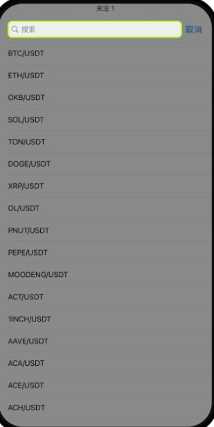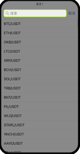 点击【选取】—搜索或者下拉找到您想添加到关注列表的币种完成操作。