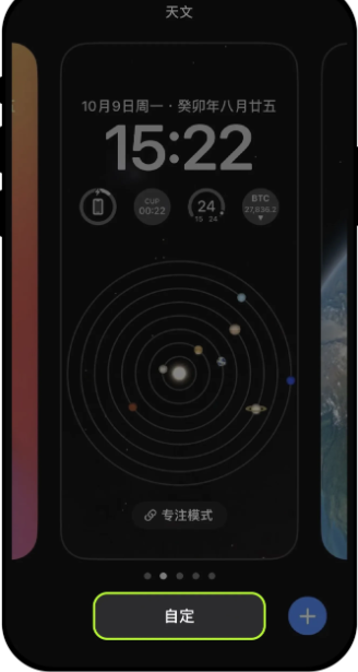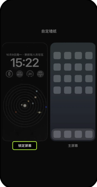 1、在锁屏页面长按屏幕,点击【自定】—【锁定屏幕】。