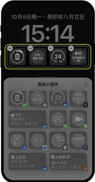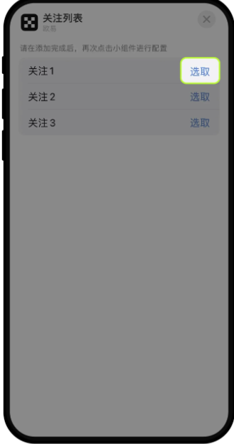 2、点击锁定屏幕小组件的位置,下拉选择欧易应用,左右滑动选择“关注现货”或者“关注列表”等内容。