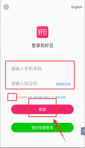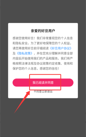 1、在好旦中点击"我已阅读并同意",进入登录界面。