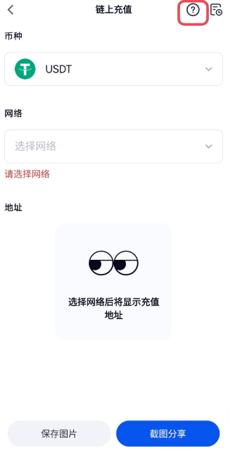 步骤二:选择“链上充值”,然后选择任意币种进入链上充值界面。