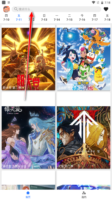 1、打开软件进入首页,点击上方搜索栏。