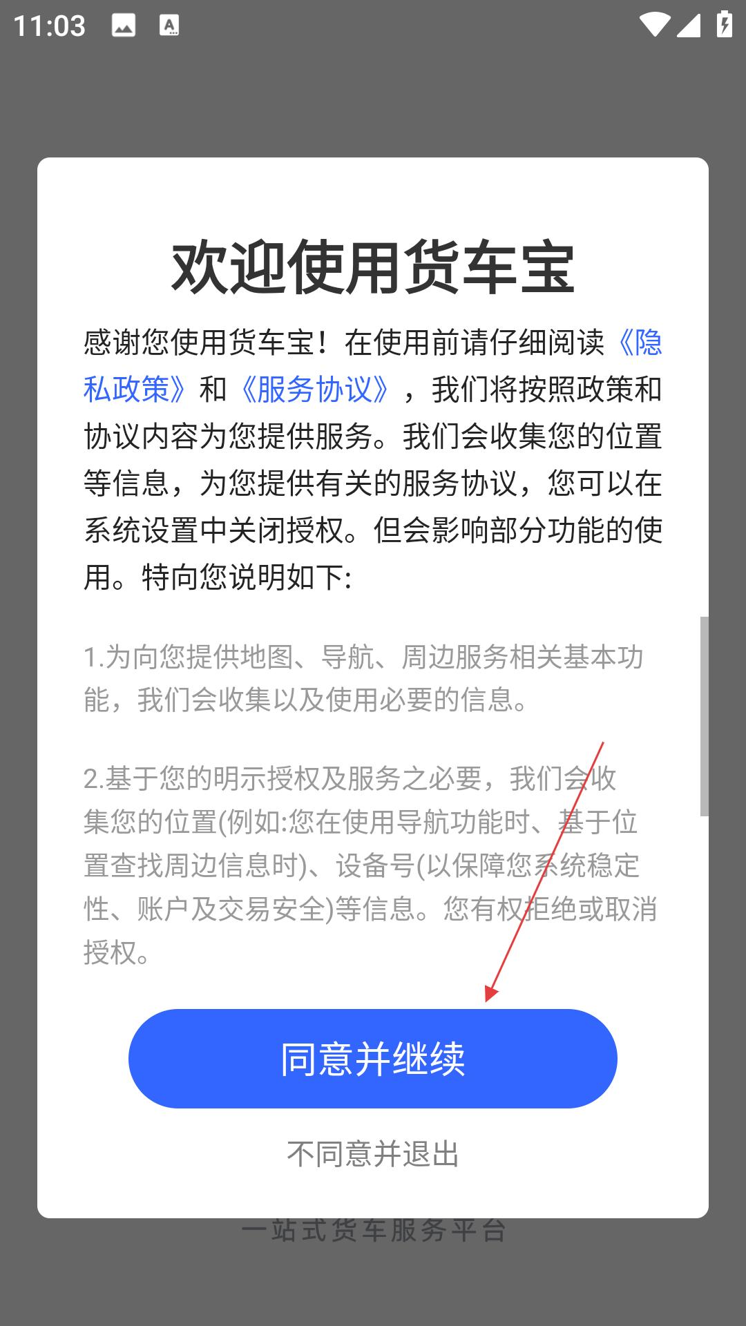 2、在协议页点同意,弹出提示,选注册账号,填信息,登录后完善货车资料,开启精准导航服务。