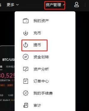 6、在首页点击【资产管理】选择【提币】进入提现页面