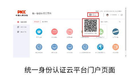 步骤一:内部员工使用数字证书成功登录到"统一身份认证云平台"门户,点击页面右上角安全令绑定码中的二维码图标,页面弹出手机安全令绑定码,如下图: