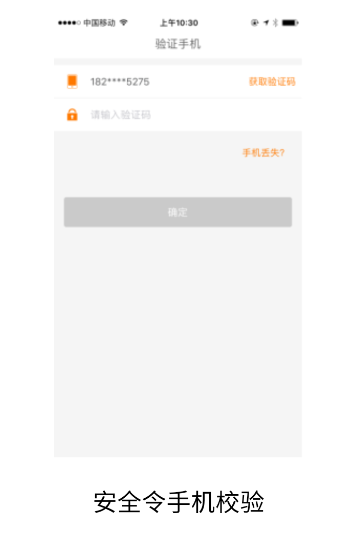 步骤三:用户首次激活手机安全令,需要填写手机号,并进行短信验证码校验手机真实性。