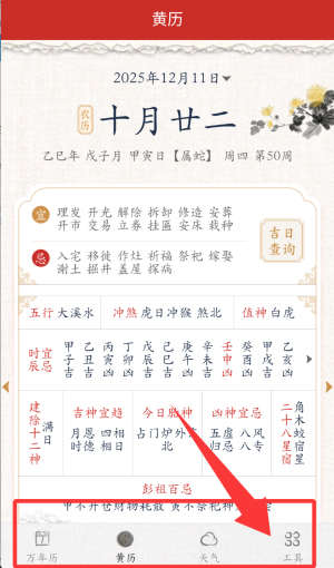 墨迹万年历最新版是一款多功能日历查询工具,提供全方位的日历查询服务,包括公历农历转换、黄历宜忌查询、节日节气提醒等,涵盖每日宜忌、五行冲煞、吉日查询等,还有空气质量、紫外线强度、穿衣建议等生活指数,这款应用不仅传承了中国传统文化精髓,还融入了现代科技元素,成为日常生活中不可或缺的贴心助手。