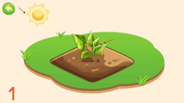 4、经过太阳的照射,土地上长出来一颗植物,用动画的形式来叫小孩数字1。