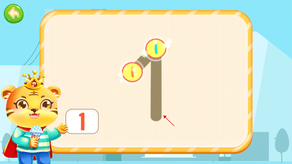 5、下面就进入到书写阶段,跟着提示来学写数字,后面还有找寻数字1,归类数字1等方式来教小孩学习数字。