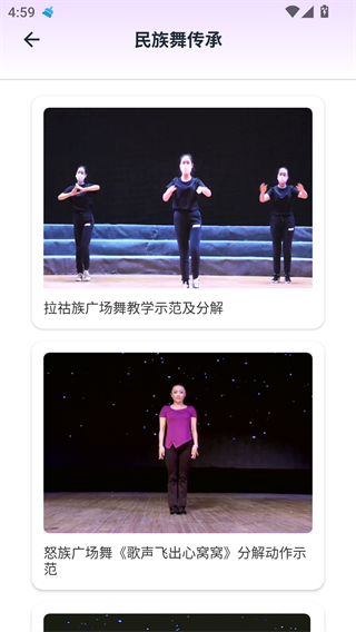 3、选择一个自己感兴趣的舞蹈分类进入,可以查看对应的舞蹈详细内容;