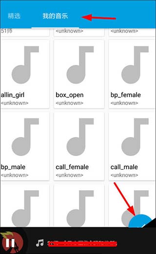 3、这样一来,用户们在音乐库页面里选择“我的音乐”分类,就可以从手机的本地选择自己的音乐进行添加设置!
