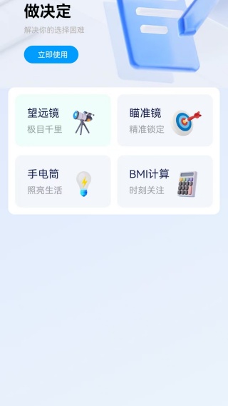 1、首页就能看到望远镜、瞄准镜、手电筒及BMI计算等功能区。