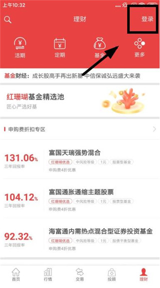3、理财板块当中,提供了基金、定期、活期等多种类型的产品供用户选择;