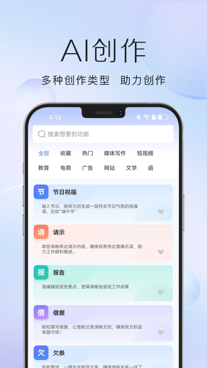 ai写作管家app是一款轻松上手、简单实用的写作软件,自带一键AI智能写作、AI生成PPT等功能,还拥有多种创作模板和创作工具,让你的创作效率翻倍!能够帮助你快速提升写作效率和质量,让文本创作变简单!